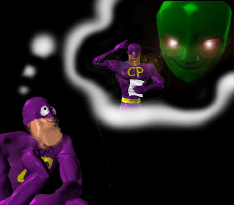 C.P.: "The fiend! I'll squash him like a bug. Like a little green bug that squirts out yellow guts-goo. Like a little boog bug!"