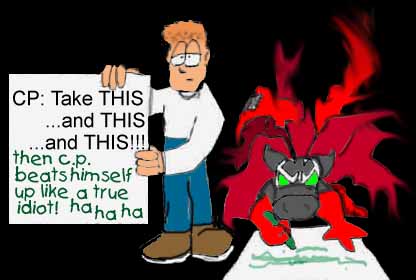 This clever ruse of Spawm's has momentarily befuddled our hero. Well, befuddle more than normal and in Captain Purple's case that's BEFUDDLE let me tell you. Spawm uses this to his advantage...